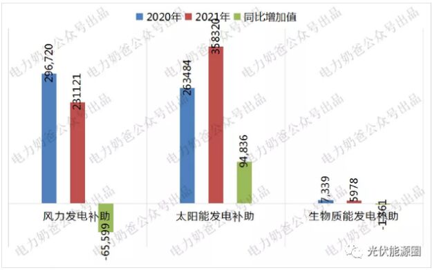 咱們一直看到的都是光伏補貼在下調(diào),但是,實際上,根據(jù)財政部的預(yù)算,2021年可再生能源電價附加補助資金合計59.54億元,同比2020年增加2.79億元,上漲5個百分點,其中,太陽能發(fā)電補助大漲36%。 可以看出,國家對于光伏的支持是一直沒有變的,包括,國家能源局、發(fā)改委、財政部都在想辦法解決往年補貼的問題。 具體分析數(shù)據(jù)如下: 2020年11月20日,財政部印發(fā)了《關(guān)于提前下達2021年可再生能源電價附加補助資金預(yù)算的通知》,通知要求,在撥付補貼資金時,應(yīng)優(yōu)先足額撥付國家光伏扶貧項目、50kW及以下裝機規(guī)模的自然人分布式項目;優(yōu)先足額撥付2019年采取競價方式確定的光伏項目、2020年采取“以收定支”原則確定的新增項目;對于國家確定的光伏“領(lǐng)跑者”項目和地方參照中央政策建設(shè)的村級光伏扶貧電站,優(yōu)先保障撥付至項目應(yīng)付補貼資金的50%;對于其他發(fā)電項目,按照各項目應(yīng)付補貼資金,采取等比例方式撥付。 2021年可再生能源電價附加補助資金合計59.54億元,同比2020年增加2.79億元,上漲5個百分點。 1、不同發(fā)電形式補助資金變化情況 可再生能源補助分為風(fēng)力發(fā)電補助、太陽能發(fā)電補助和生物質(zhì)能發(fā)電補助三大類,2021年風(fēng)力發(fā)電補助同比降低6.56億元,降幅達22.1%,而太陽能發(fā)電補助資金同比增加9.48億元,漲幅達36%。體現(xiàn)了國家對光伏發(fā)電產(chǎn)業(yè)的大力扶持。