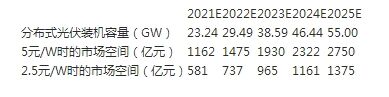 按照CPIA對分布式光伏新增容量的預測,樂觀情況下,我國到2025年的分布式光伏新增裝機容量為55GW,如果按5元/W的造價,到2025年,我國分布式光伏的市場空間將達到2750億元,呈現(xiàn)千億級的市場潛力,公司積極發(fā)展分布式光伏項目,具有較大的成長空間。 樂觀情況下2021-2025年我國分布式光伏市場空間預測