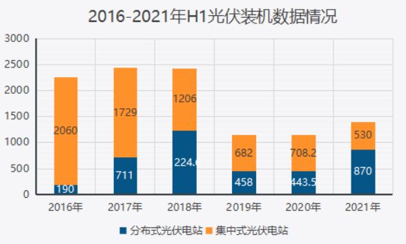 供應鏈價格對國內(nèi)光伏電站終端需求的抑制作用在上半年裝機數(shù)據(jù)中體現(xiàn)明顯,在上游價格持續(xù)上漲的高壓下,光伏電站下游裝機需求并不樂觀,尤其是集中式地面電站裝機慘淡,創(chuàng)下近六年來的裝機最低規(guī)模。同時,這也是近六年的半年度裝機中,分布式光伏首次大規(guī)模超過地面電站。