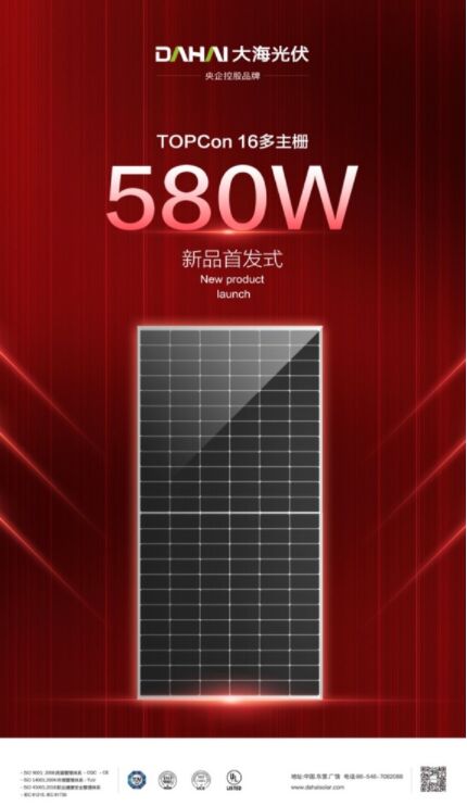 11月19日,大海光伏580W高功率光伏組件在山東省東營(yíng)市廣饒開(kāi)發(fā)區(qū)大海光伏基地正式下線。