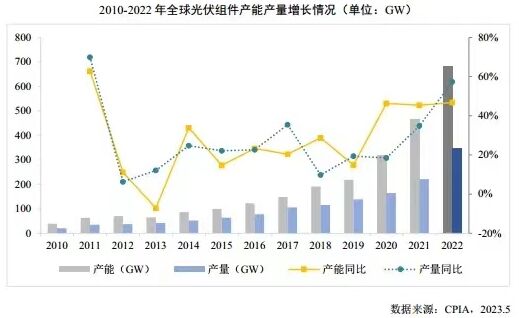 從生產(chǎn)規(guī)模來看,2022年我國光伏組件產(chǎn)能、產(chǎn)量分別達551.9吉瓦、294.7吉瓦,同比分別增長53.7%、62.1%,產(chǎn)業(yè)整體規(guī)模進一步擴大。