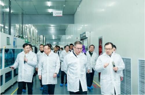 儀式結(jié)束后,與會(huì)領(lǐng)導(dǎo)們一行走進(jìn)生產(chǎn)車間,詳細(xì)了解TOPCon太陽能電池的整套生產(chǎn)工藝流程。