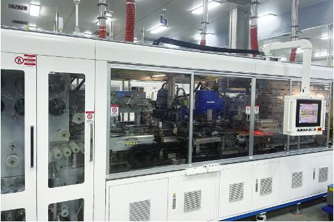 宏潤(rùn)新能源生產(chǎn)車(chē)間,自動(dòng)化機(jī)器正在作業(yè)。