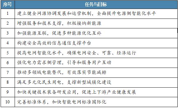 三、近幾年智能電網(wǎng)的建設(shè)與規(guī)模情況 2015年,國(guó)家發(fā)展改革委、國(guó)家能源局發(fā)布《關(guān)于促進(jìn)智能電網(wǎng)發(fā)展的指導(dǎo)意見(jiàn)》,該《意見(jiàn)》宗旨是在傳統(tǒng)電力系統(tǒng)基礎(chǔ)上,通過(guò)集成新能源、新材料、新設(shè)備和先進(jìn)傳感技術(shù)、信息技術(shù)、控制技術(shù)、儲(chǔ)能技術(shù)等新技術(shù),形成的新一代電力系統(tǒng),具有高度信息化、自動(dòng)化、互動(dòng)化等特征,可以更好地實(shí)現(xiàn)電網(wǎng)安全、可靠、經(jīng)濟(jì)、高效運(yùn)行。至2020年,初步建成安全可靠、開(kāi)放兼容、雙向互動(dòng)、高效經(jīng)濟(jì)、清潔環(huán)保的智能電網(wǎng)體系,滿足電源開(kāi)發(fā)和用戶需求。 《意見(jiàn)》提出國(guó)內(nèi)智能電網(wǎng)建設(shè)分為十大建設(shè)任務(wù)