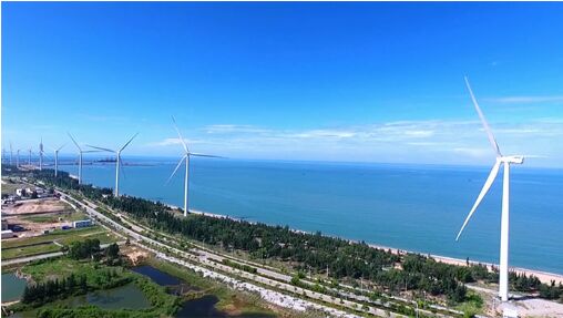 2021年,海南清潔能源電量占比由52%提升至59%,實現(xiàn)風、光、水電實現(xiàn)全額消納。圖為沿海風力發(fā)電。