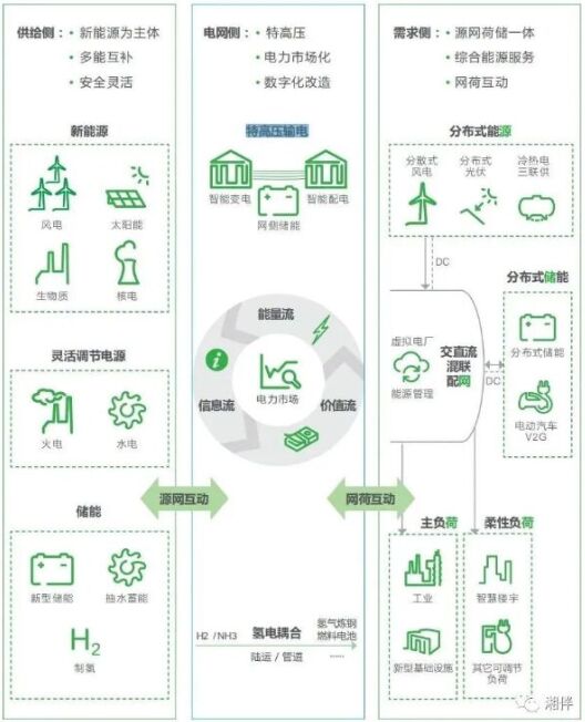 湘伴君認(rèn)為,新型電力系統(tǒng)的“新”字,就集中體現(xiàn)在“清潔低碳、安全充裕、經(jīng)濟(jì)高效、供需協(xié)同、靈活智能”這二十個(gè)字上。