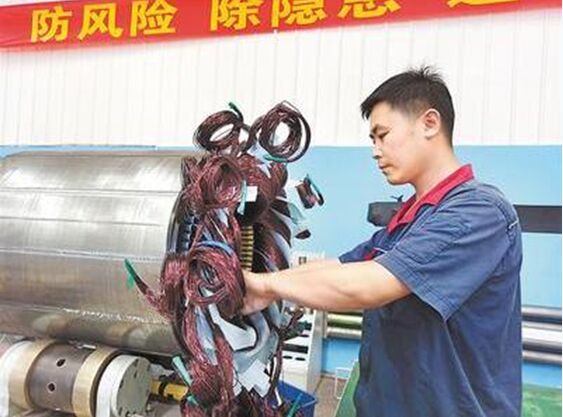 9月1日,河北電機(jī)股份有限公司員工正在變頻高效高壓電機(jī)數(shù)字化車間進(jìn)行電機(jī)生產(chǎn)。