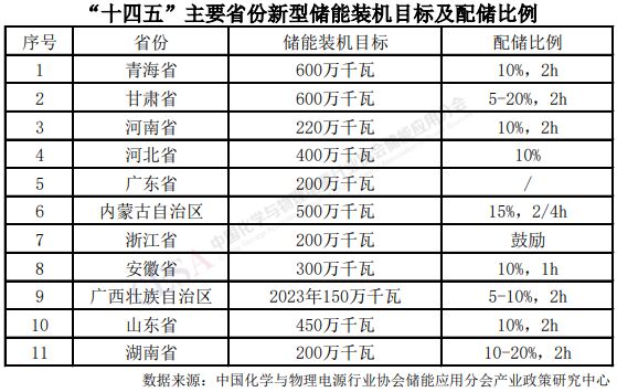 2021年7月,國(guó)家發(fā)展改革委、國(guó)家能源局聯(lián)合發(fā)布《關(guān)于加快推動(dòng)新型儲(chǔ)能發(fā)展的指導(dǎo)意見》,到2025年,新型儲(chǔ)能裝機(jī)規(guī)模達(dá)3000萬千瓦以上。2022年3月,《“十四五”新型儲(chǔ)能發(fā)展實(shí)施方案》進(jìn)一步明確發(fā)展目標(biāo)和細(xì)化重點(diǎn)任務(wù)。為加快推進(jìn)新型儲(chǔ)能規(guī);瘧(yīng)用,推動(dòng)新型儲(chǔ)能快速發(fā)展,全國(guó)多省市自治區(qū)陸續(xù)提出了“十四五”新型儲(chǔ)能裝機(jī)目標(biāo)。