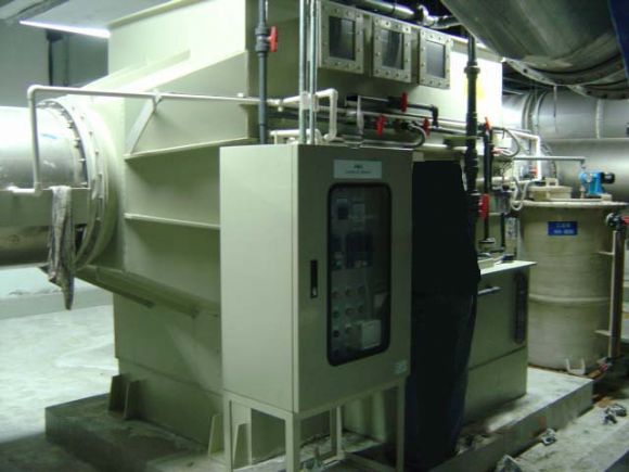 一、產(chǎn)品概述 HSD-XD系列洗滌塔是我公司吸收國(guó)外洗滌塔設(shè)備的先進(jìn)技術(shù),并結(jié)合我公司豐 富的制造實(shí)踐經(jīng)驗(yàn),研究開(kāi)發(fā)的氣體凈化設(shè)備。HSD-XD系列洗滌塔的作用是將氣體 中的雜質(zhì)用溶劑反應(yīng)而除掉,本塔采用PVC、PP、FRP等制成,內(nèi)設(shè)逆向填料吸收系 統(tǒng)、噴淋系統(tǒng)、脫霧裝置系統(tǒng)、下設(shè)供水箱、供水泵系統(tǒng)、進(jìn)出風(fēng)口、風(fēng)機(jī)、風(fēng)管、 吸罩組成等系統(tǒng)。 二、工作原理 HSD-XD系列洗滌塔屬兩相逆向流填料吸收塔。 氣體從塔體下方進(jìn)氣口沿切向進(jìn)入凈化塔,在通風(fēng)機(jī)的動(dòng)力作用下,迅速充滿進(jìn) 氣段空間,然后均勻地通過(guò)均流段上升到第一級(jí)填料吸收段。在填料的表面上,氣相 中污物與液相中物質(zhì)發(fā)生化學(xué)反應(yīng)。反應(yīng)生成物油(多數(shù)為可溶性鹽類)隨吸收液流 入下部貯液槽。未完全吸收的氣體繼續(xù)上升進(jìn)入第一級(jí)噴淋段。在噴淋段中吸收液從 均布的噴嘴高速噴出,形成無(wú)數(shù)細(xì)小霧滴與氣體充分混合、接觸、繼續(xù)發(fā)生化學(xué)反應(yīng)。 然后氣體上升到第二級(jí)填料段、噴淋段進(jìn)行與第一級(jí)類似的吸收過(guò)程。第二級(jí)與第一 級(jí)噴嘴密度不同,噴液壓力不同,吸收氣體濃度范圍也有所不同。在噴淋段及填料段 兩相接觸的過(guò)程也是材熱與傳質(zhì)的過(guò)程。通過(guò)控制空塔流速與滯貯時(shí)間保證這一過(guò)程 的充分與穩(wěn)定。對(duì)于某些化學(xué)活潑性較差的氣體,尚需在吸收液中加入一定量的表面 活性劑。塔體的最上部是除霧段,氣體中所夾帶的吸收液霧滴在這里被清除下來(lái),經(jīng) 過(guò)處理后的潔凈空氣從凈化塔上端排氣管放入大氣。 三、標(biāo)準(zhǔn)配置 ◆循環(huán)系統(tǒng)包括一臺(tái)循環(huán)泵(220/380V-50Hz-3相),流量計(jì)和一個(gè)閘閥來(lái)控制液 體流量。 ◆布液噴嘴采用PP材質(zhì),形成120°實(shí)心錐形噴霧形狀,防阻塞通道設(shè)計(jì)最大程度的 減少了堵塞現(xiàn)象。 ◆當(dāng)安裝兩臺(tái)或多臺(tái)泵時(shí)需要安裝一個(gè)壓力表來(lái)平衡壓力。 ◆溢流及排污系統(tǒng),將飽和和吸收液排放到水處理裝置。 ◆補(bǔ)水系統(tǒng),帶可調(diào)整的浮球閥以維持液位。 ◆液位開(kāi)關(guān),控制低液位時(shí)停泵。 四、產(chǎn)品特點(diǎn) 1)水洗式廢氣處理系統(tǒng),價(jià)格便宜、處理方法簡(jiǎn)單; 2)直立式結(jié)構(gòu)最適用于經(jīng)濟(jì)空間安裝; 3)適用于氣態(tài)及液態(tài)污染源; 4)處理單一污染源; 5)適用于中低風(fēng)量。 立式洗滌塔最大的特點(diǎn)是通過(guò)組合可回收處理廢氣中可綜合利用的原材料,其核心 部分洗滌吸收區(qū)高度可根據(jù)處理氣體的不同而調(diào)整,填料采用PP材質(zhì),形狀為多齒 TELLERTTE形,空隙率達(dá)到95%,;除水層的填料采用PP材質(zhì),形狀為圓弧 TELLERTTE形,空隙率達(dá)到95%,比表面積達(dá)180 m2/m3。灑水頭采用PP120度 旋轉(zhuǎn)無(wú)堵塞噴頭。全系統(tǒng)具有極高的耐強(qiáng)酸堿性; 五、適應(yīng)范圍 除塵、酸性及堿性廢氣,例如H2S、CI2、HCL、NH3、NOX、SOX和惡臭氣體等。 六、應(yīng)用領(lǐng)域 應(yīng)用于電子、化工、電鍍、鋼鐵、有色金屬、冶鐵、醫(yī)藥、造紙、污水處理廠等行業(yè) 的廢氣處理。 七、設(shè)備參數(shù) 型 號(hào) 處理風(fēng)量 (m3/h) Φ1(m) Φ2(m) C (m) L (m) W (m) H (m) 設(shè)備凈重(Kg) 運(yùn)行重量(Kg) HSD-XD-600 600 0.15 0.15 0.40 0.90 0.90 3.20 235 1360 HSD-XD-1500 1500 0.20 0.20 0.55 1.05 1.05 3.50 250 1410 HSD-XD-2500 2500 0.30 0.25 0.70 1.20 1.20 3.60 410 1775 HSD-XD-4000 4000 0.35 0.35 0.85 1.35 1.35 3.90 510 2070 HSD-XD-5500 5500 0.40 0.40 1.00 1.50 1.50 4.00 600 2575 HSD-XD-7500 7500 0.50 0.45 1.15 1.85 1.70 4.20 685 3125 Φ1=進(jìn)氣口直徑 Φ2=出氣口直徑 C=洗滌塔外徑 L=洗滌塔長(zhǎng)度 W=洗滌塔寬度 H=洗滌塔高度 注:洗滌塔是通風(fēng)系統(tǒng)中進(jìn)行化學(xué)處理的主要組成部件,其他部件包括風(fēng)機(jī)、填料、管道系統(tǒng)等。 以上數(shù)據(jù)僅供參考,我公司保留修改權(quán)。