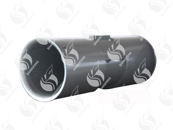 消聲器:風(fēng)機(jī)段兩端配消聲器。消聲器為兩層圓筒結(jié)構(gòu),內(nèi)筒為穿孔板,外筒由鋼板滾圓、焊接而成。中間充填專用的超細(xì)玻璃棉吸聲材料,流線型噴嘴改善了流場,使風(fēng)機(jī)具有高的運(yùn)行效率。