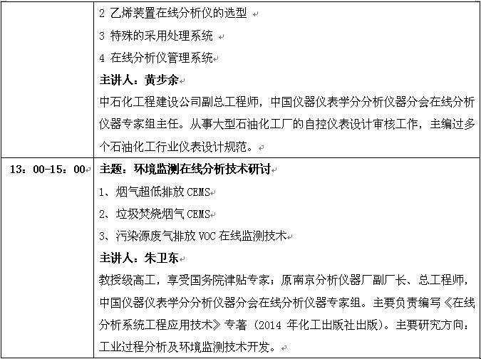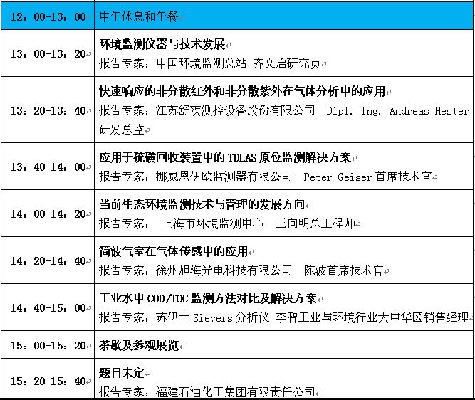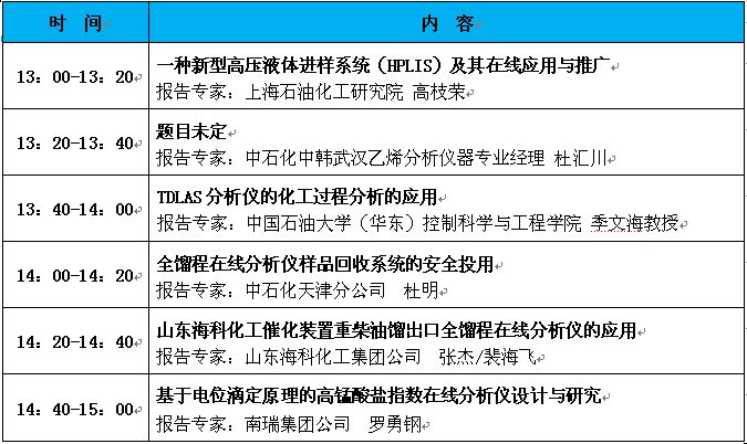“第十二屆中國在線分析儀器應(yīng)用及發(fā)展國際論壇暨展覽會”大會日程表