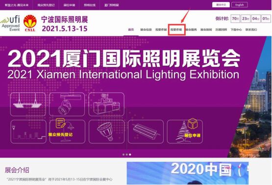 一、官網(wǎng)觀眾預(yù)登記 進入寧波照明展官網(wǎng)