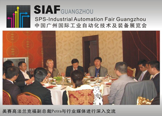 11月5日,SIAF GUANGZHOU 的主承辦單位--中國對外貿(mào)易廣州展覽公司、廣州富洋展覽有限公司、廣州光亞法蘭克福展覽有限公司以及德國美賽高法蘭克福展覽有限公司在上海召開了媒體見面會,邀請了國內(nèi)外的自動化行業(yè)媒體出席。美賽高法蘭克福展覽公司副總裁Petra Haarburger女士在會上做了發(fā)言,“SIAF2010中國廣州國際工業(yè)自動化技術(shù)及裝備展覽會”在自動化領(lǐng)域內(nèi)已經(jīng)引起了巨大反響,眾多國際知名品牌紛紛積極報名參與此次盛會,主辦各方都對SIAF2010的前景充滿了信心和期待。 SIAF GUANGZHOU,即中國廣州國際工業(yè)自動化技術(shù)及裝備展覽會,是全球最大自動化展---“SPS/IPC/DRIVES電氣自動化展”與華南著名工控展---“CHIFA中國(廣州)國際工業(yè)控制自動化及儀器儀表展”在中國的完美結(jié)合。經(jīng)過資源整合,展會將借鑒SPS成功辦展經(jīng)驗和營銷模式投入運行。
