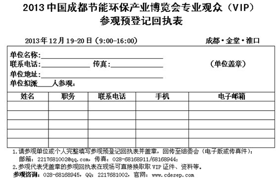 四川省環(huán)境保護產(chǎn)業(yè)協(xié)會、四川省環(huán)境和資源綜合利用協(xié)會、成都工業(yè)經(jīng)濟聯(lián)合會、成都表面工程行業(yè)協(xié)會等川內(nèi)專業(yè)協(xié)會團體同期召開年會及技術(shù)交流會,組織會員單位參展參觀。 參展參觀免費 往返班車接送 參觀觀眾可通過大會官網(wǎng)進行參觀預登記(www.cdesep.com/cang.shtml),或填寫“參觀預登記回執(zhí)表”蓋章并按表格下方要求回傳至組委會,或帶名片至展會現(xiàn)場換取相關(guān)證件。