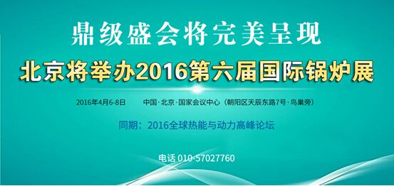 2016第六屆國(guó)際鍋爐展即IBE (International Boiler Exhibition)已定于2016年4月6日、7日、8日在中國(guó)北京國(guó)家會(huì)議中心(鳥巢旁)舉辦,屆時(shí)全球范圍鍋爐行業(yè)的鼎級(jí)盛會(huì)將完美呈現(xiàn)。