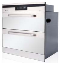 不銹鋼材質(zhì),圓弧拉手設(shè)計 智能感應(yīng)觸摸屏設(shè)計 電磁安全門鎖會自動上鎖,防止臭氧外泄,意外輻射和燙傷 LED數(shù)碼顯示,觸摸式按鈕,全程微電腦控制 臭氧紫外線組合雙重消毒 獨特的外導(dǎo)軌設(shè)計,防止內(nèi)腔二次污染