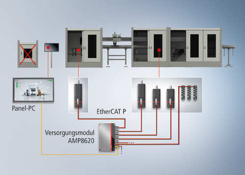 AMP8000 分布式伺服驅(qū)動(dòng)系統(tǒng)為實(shí)現(xiàn)模塊化設(shè)備方案提供了理想的支持。最新推出的 AMP8620 電源模塊防護(hù)等級(jí)較高,現(xiàn)在可以將整個(gè)系統(tǒng)直接重新放置到設(shè)備中,即通過(guò)連續(xù)的分散控制,可以完全實(shí)現(xiàn)無(wú)控制柜的驅(qū)動(dòng)技術(shù)。這意味著可以最大限度地節(jié)省材料和空間,降低成本,減少裝配工作。